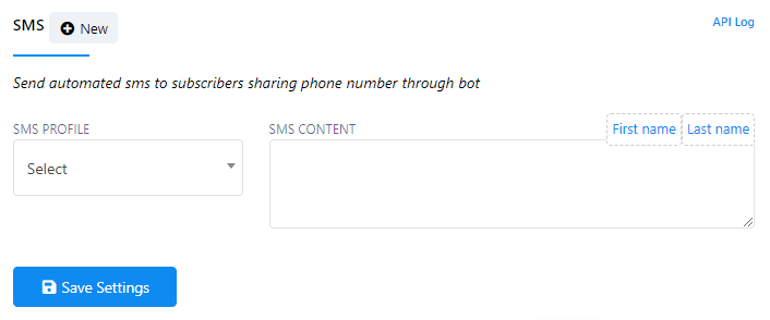 - Then, click the `New` button beside the SMS Profile.